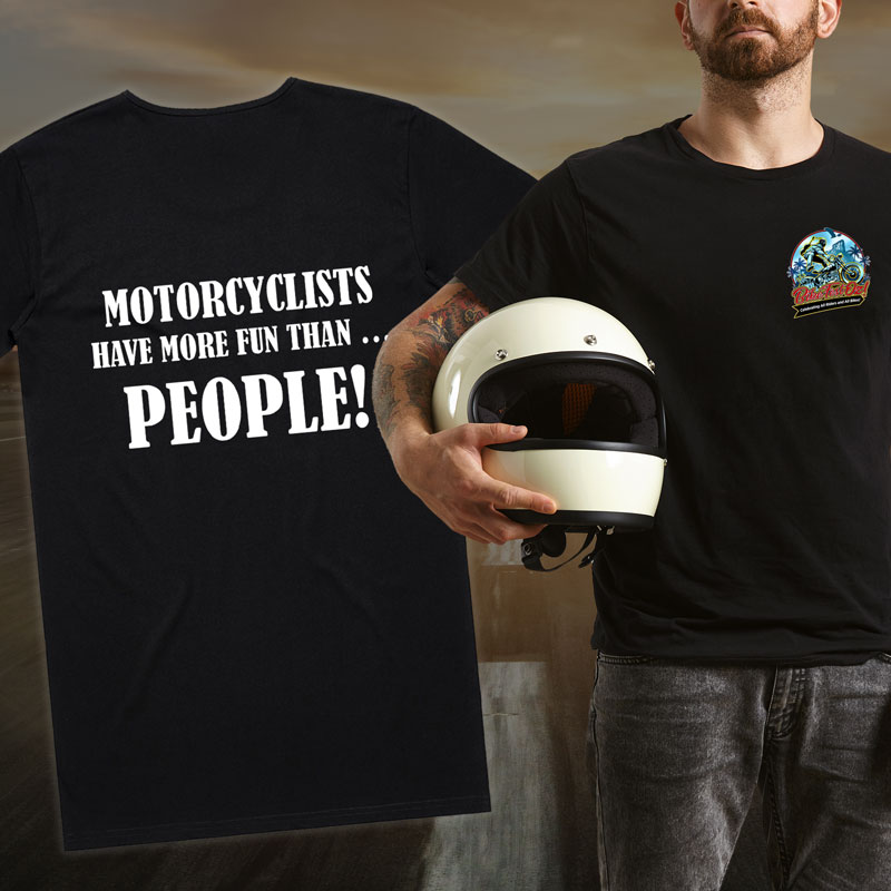 Commemorate your Bike Fest Oz! experience with an official T-Shirt. Black T with BFO! logo on the front and slogan on the back.
