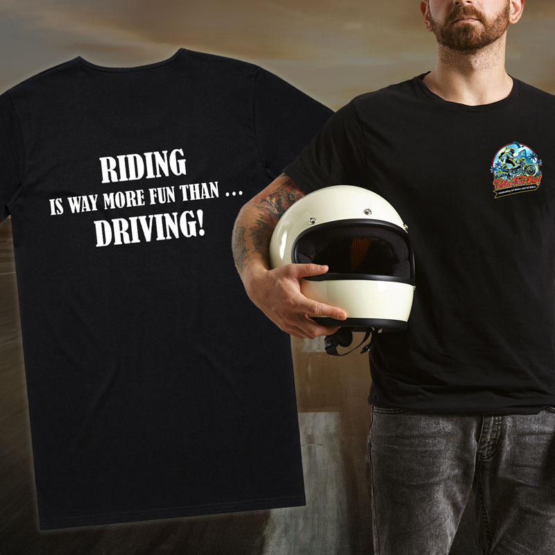 Commemorate your Bike Fest Oz! experience with an official T-Shirt. Black T with BFO! logo on the front and slogan on the back.
